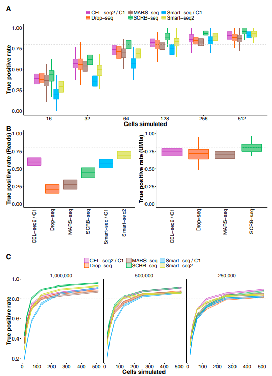 04 Drop-seq对于大量细胞的转录组定量更具成本效益,而MARS-seq、SCRB-seq和Smart-seq2在分析较少细胞时更有效