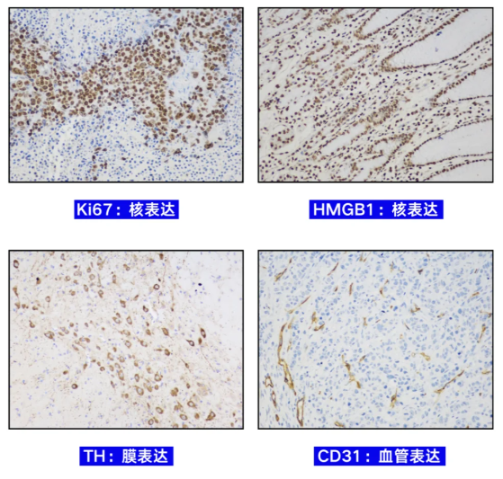 免疫组化(IHC),利用抗原与抗体特异性结合原理,通过化学反应使标记抗体的显色剂显色来确定组织细胞内的抗原成分(多肽和蛋白质),对其进行定位、定性及定量研究。
